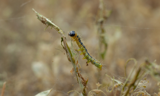 - Small green caterpillars with black stripes